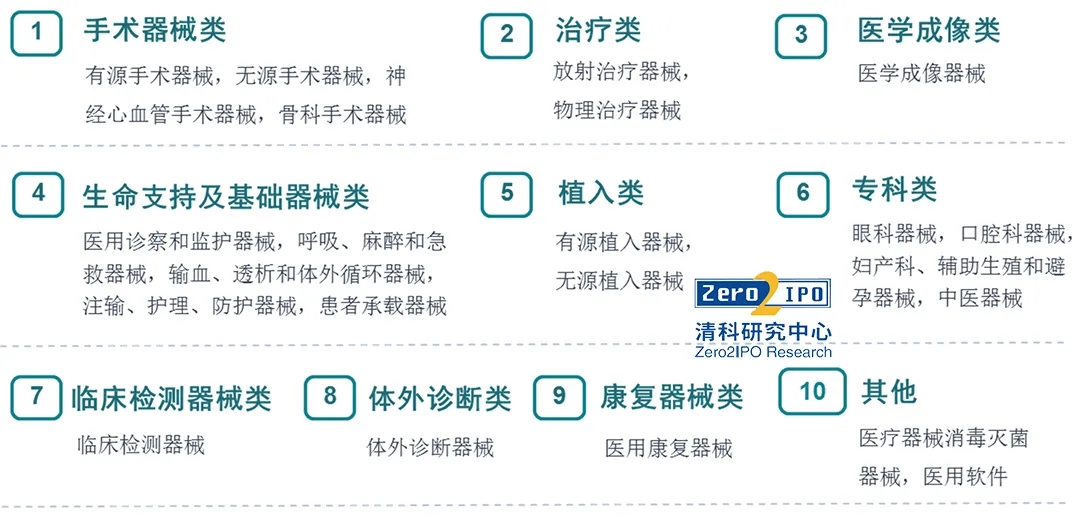 醫療器械,是指直接或者間接用于人體的儀器、設備、器具、體外診斷試劑及校準物、材料以及其他類似或者相關的物品,包括所需要的計算機軟件。結合原國家食藥監總局《醫療器械分類目錄》和醫療器械市場投融資特點,本研究將醫療器械產品分為10個大類,包括:手術器械類、治療類、醫學成像類、生命支持及基礎器械類、植入類、專科類、體外診斷類、臨床檢測器械類、康復器械類等。